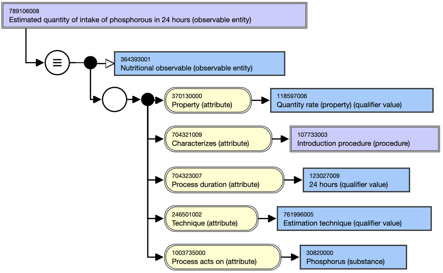 <figure><img src="https://3063935683-files.gitbook.io/~/files/v0/b/gitbook-x-prod.appspot.com/o/spaces%2FSZh4aZdgpviXMYp37bCy%2Fuploads%2Fgit-blob-95fa8ce258bace6ee8d9b3efe3af57000906322c%2Fimage%20(308).png?alt=media" alt=""><figcaption><p>Figure 1. Stated view of 789106008 |Estimated quantity of intake of phosphorous in 24 hours (observable entity)|</p></figcaption></figure>