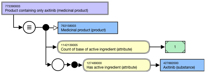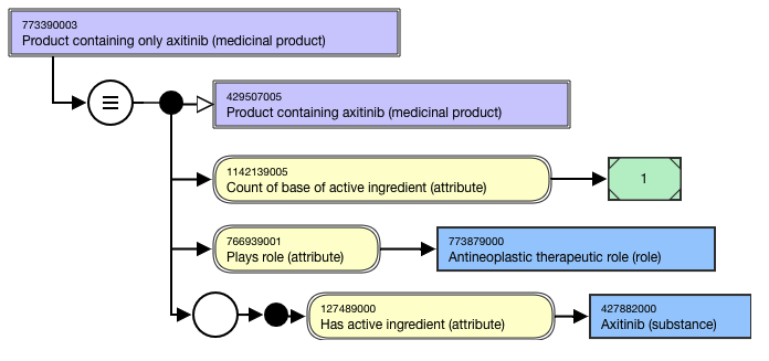 <figure><img src="https://3063935683-files.gitbook.io/~/files/v0/b/gitbook-x-prod.appspot.com/o/spaces%2FSZh4aZdgpviXMYp37bCy%2Fuploads%2Fgit-blob-a2b8d05a7da20a734bc438632353e8dc54708f3b%2Fimage%20(135).png?alt=media" alt=""><figcaption><p><strong>Stated</strong> view for 773390003 |Product containing only axitinib (medicinal product)|</p></figcaption></figure>