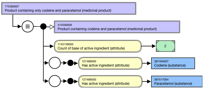 <figure><img src="https://3063935683-files.gitbook.io/~/files/v0/b/gitbook-x-prod.appspot.com/o/spaces%2FSZh4aZdgpviXMYp37bCy%2Fuploads%2Fgit-blob-f025acc24e365b079cb1c76359534cc961c7444e%2Fimage%20(339).png?alt=media" alt=""><figcaption><p><strong>Inferred</strong> view for 775360007 |Product containing only codeine and paracetamol (medicinal product)|</p></figcaption></figure>