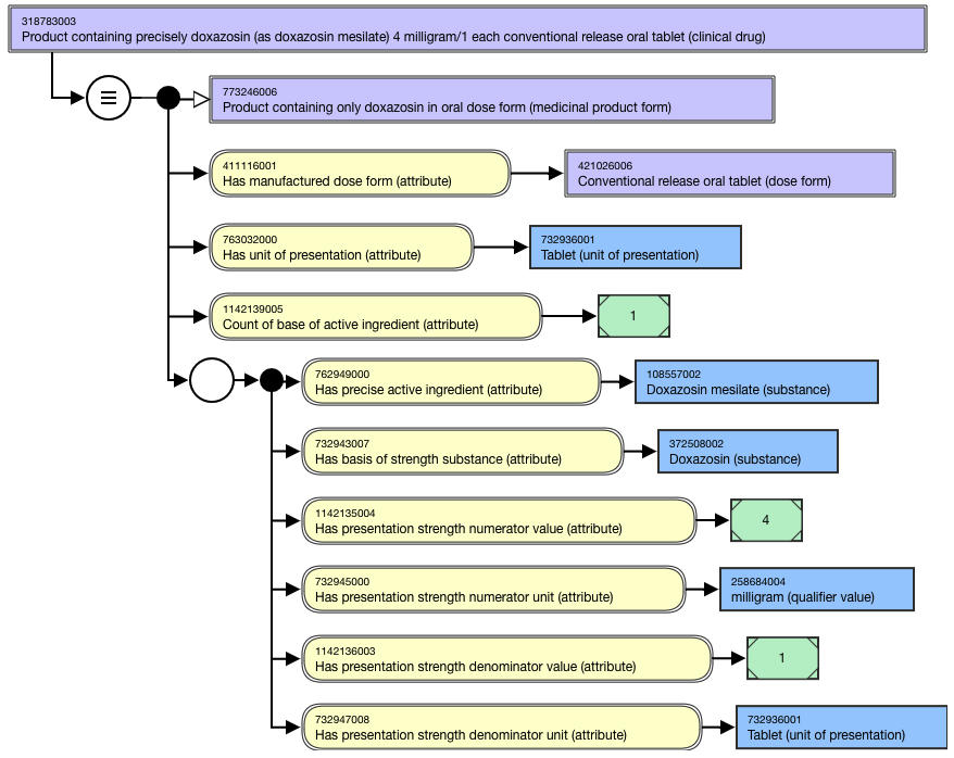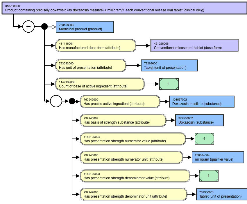 <figure><img src="https://3063935683-files.gitbook.io/~/files/v0/b/gitbook-x-prod.appspot.com/o/spaces%2FSZh4aZdgpviXMYp37bCy%2Fuploads%2Fgit-blob-464aa1947fffdcf1319b953cc423127753d9eed9%2Fimage%20(39).png?alt=media" alt=""><figcaption><p><strong>Stated</strong> view for 318783003 |Product containing precisely doxazosin (as doxazosin mesilate) 4 milligram/1 each conventional release oral tablet (clinical drug)|</p></figcaption></figure>