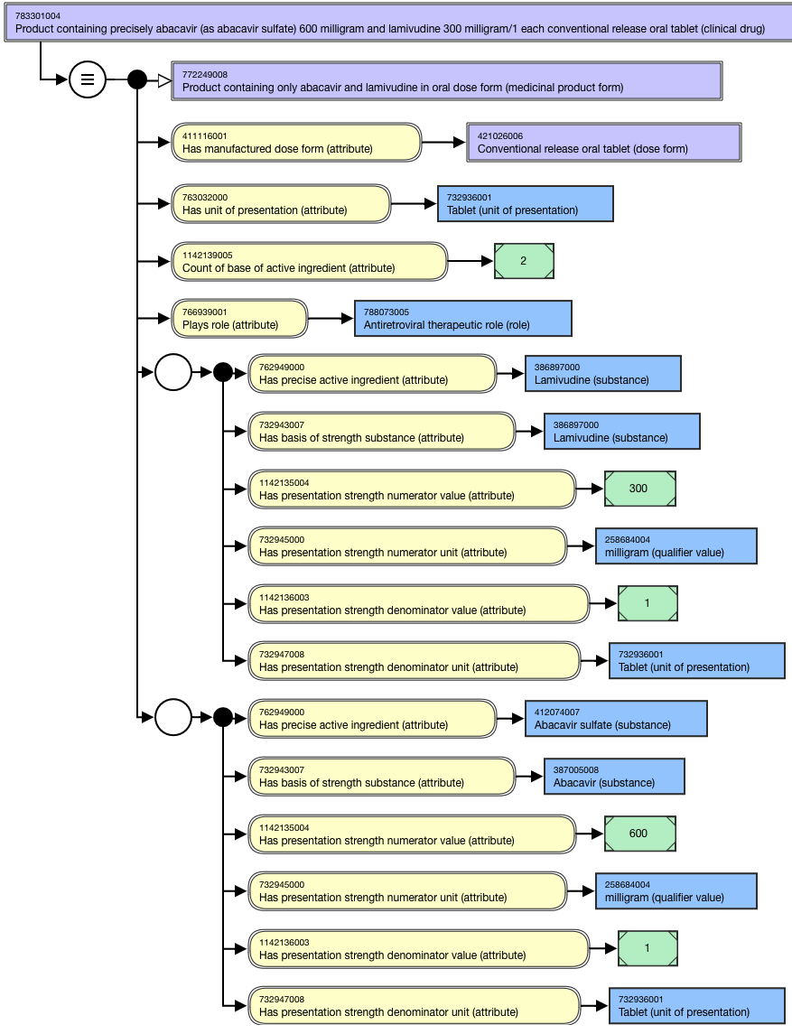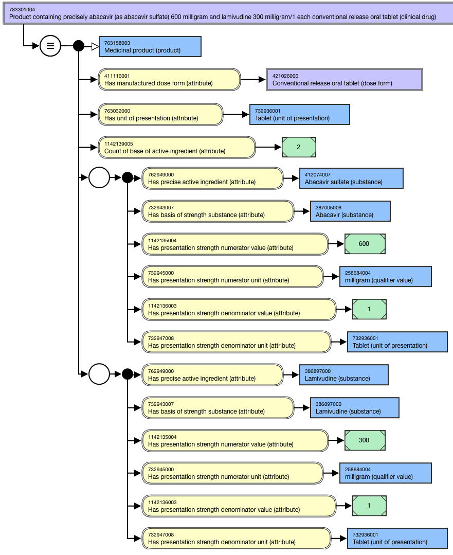 <figure><img src="https://3063935683-files.gitbook.io/~/files/v0/b/gitbook-x-prod.appspot.com/o/spaces%2FSZh4aZdgpviXMYp37bCy%2Fuploads%2Fgit-blob-d9d3ab076e95223e343c785d34dad16ac2b52457%2Fimage%20(43).png?alt=media" alt=""><figcaption><p><strong>Stated</strong> view for 783301004 |Product containing precisely abacavir (as abacavir sulfate) 600 milligram and lamivudine 300 milligram/1 each conventional release oral tablet (clinical drug)|</p></figcaption></figure>