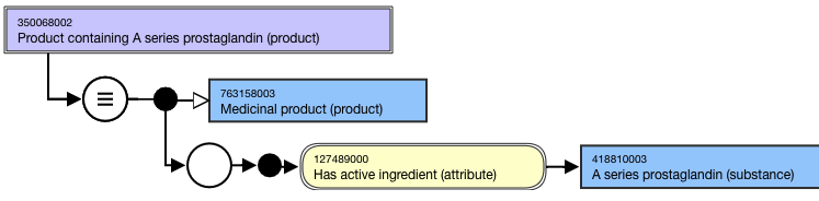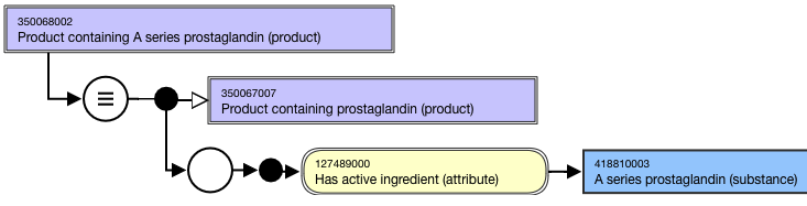 <figure><img src="https://3063935683-files.gitbook.io/~/files/v0/b/gitbook-x-prod.appspot.com/o/spaces%2FSZh4aZdgpviXMYp37bCy%2Fuploads%2Fgit-blob-0a92f3eec6bc4f48a45ce071a65e73e8c9f6d0bb%2Fimage%20(67).png?alt=media" alt=""><figcaption><p><strong>Stated</strong> view for 350068002 |Product containing A series prostaglandin (product)|</p></figcaption></figure>