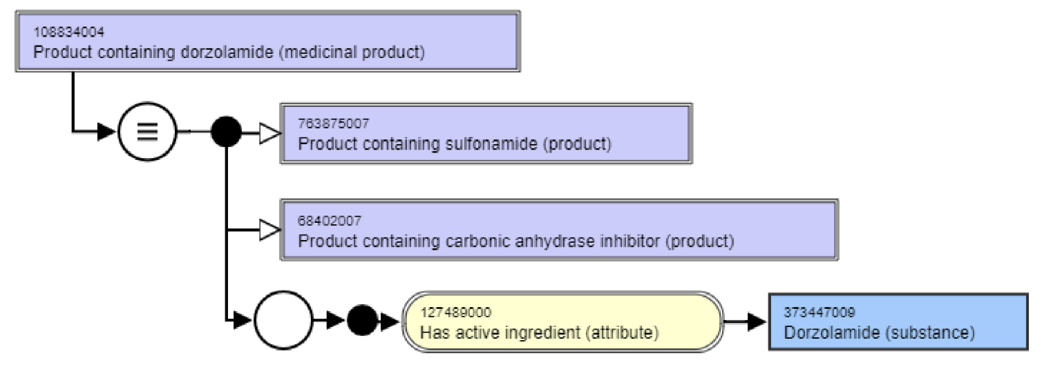 <p align="center">Inferred view of Medicinal product showing membership of a structural grouping (sulfonamide)</p>