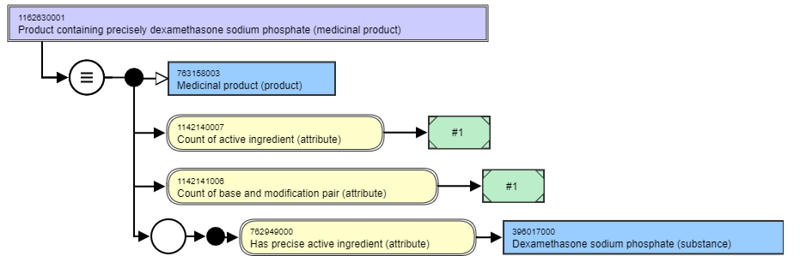 <figure><img src="https://3063935683-files.gitbook.io/~/files/v0/b/gitbook-x-prod.appspot.com/o/spaces%2FSZh4aZdgpviXMYp37bCy%2Fuploads%2Fgit-blob-c278633cb88c88aa6a522a3f143517ebf721e869%2Fimage%20(154).png?alt=media" alt=""><figcaption><p><em>Single Ingredient Medicinal Product (precisely) example stated view</em></p></figcaption></figure>