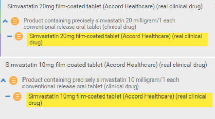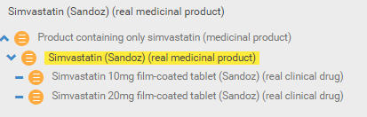 *Figure: Example of real clinical drug "generic" products where a real medicinal product concept has not be authored*