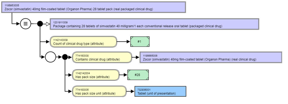 #### **Example:** simple real packaged clinical drug: stated view followed by the inferred view