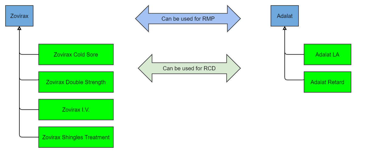 <figure><img src="https://3063935683-files.gitbook.io/~/files/v0/b/gitbook-x-prod.appspot.com/o/spaces%2FSZh4aZdgpviXMYp37bCy%2Fuploads%2Fgit-blob-fc00c38e195fef6b31d87bc8d2c4a73f7d09a148%2Fimage%20(192).png?alt=media" alt=""><figcaption><p><em>Diagram to show RCDs sharing a single product name associated with different RMPs due to having different suppliers</em></p></figcaption></figure>