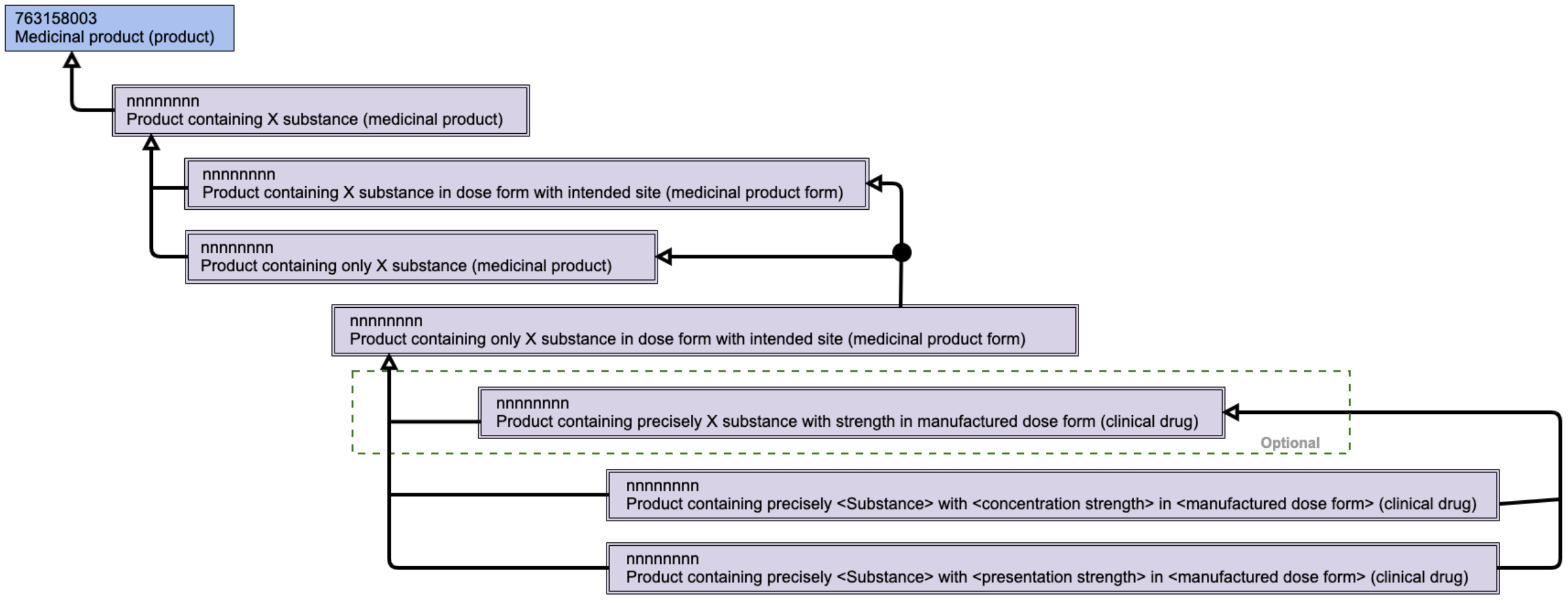 <figure><img src="https://github.com/SNOMED-Documents/snomed-editorial-guide/blob/main/authoring/pharmaceutical-and-biologic-product/images/304775772.png" alt=""><figcaption><p>Figure: Medicinal Product concept model - International - SNOMED notation</p></figcaption></figure>