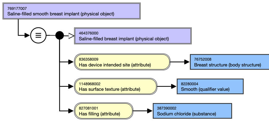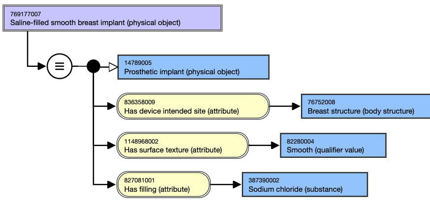 The following illustrates the **inferred** view for 769177007 |Saline-filled smooth breast implant (physical object)|: