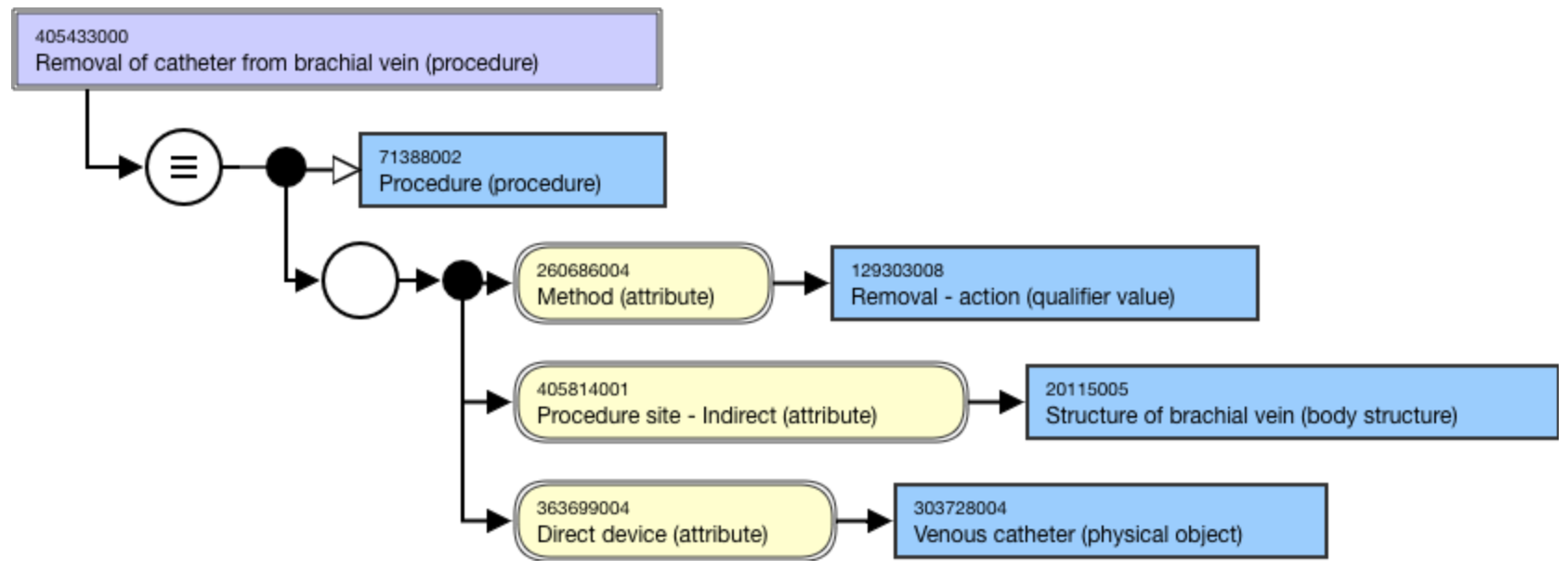 <figure><img src="https://3063935683-files.gitbook.io/~/files/v0/b/gitbook-x-prod.appspot.com/o/spaces%2FSZh4aZdgpviXMYp37bCy%2Fuploads%2Fgit-blob-412fa8f0d85edda95e2a38749bb2dafb45da55ff%2Fimage%20(233).png?alt=media" alt=""><figcaption><p>Stated view of 405433000 |Removal of catheter from brachial vein (procedure)|</p></figcaption></figure>