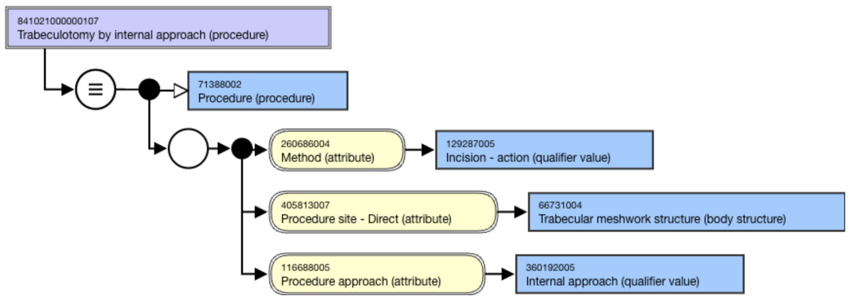 * 841021000000107 |Trabeculotomy by internal approach (procedure)| using |Internal approach (qualifier value)|