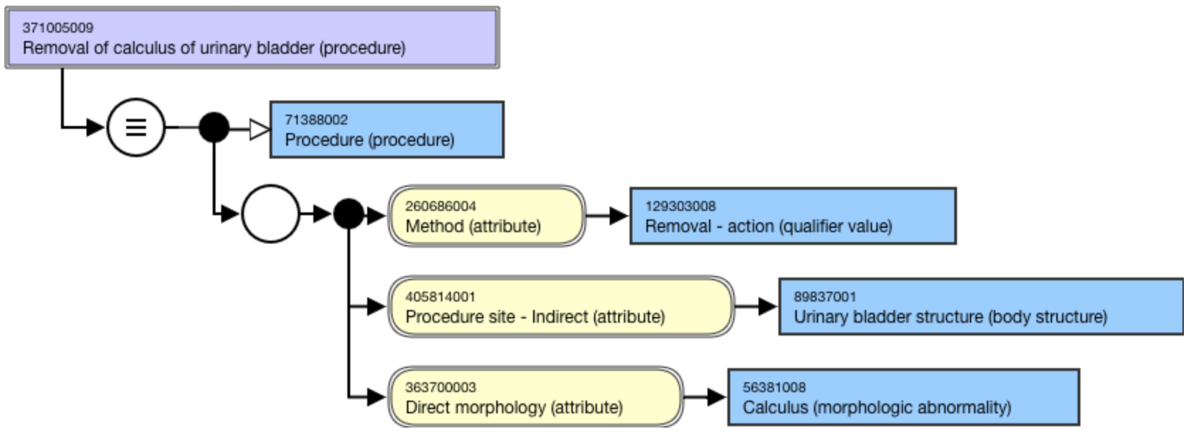 <figure><img src="https://3063935683-files.gitbook.io/~/files/v0/b/gitbook-x-prod.appspot.com/o/spaces%2FSZh4aZdgpviXMYp37bCy%2Fuploads%2Fgit-blob-8a1f13563cc803d6035fe8af677a9c4c56eb139c%2Fimage%20(234).png?alt=media" alt=""><figcaption><p>Stated view of 371005009 |Removal of calculus of urinary bladder (procedure)|</p></figcaption></figure>