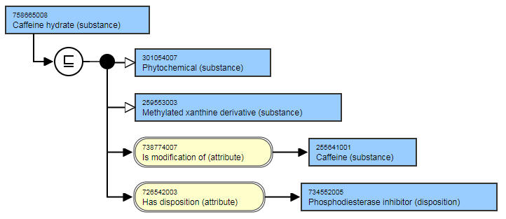 * Caffeine hydrate (substance) IS MODIFICATION OF Caffeine (substance).