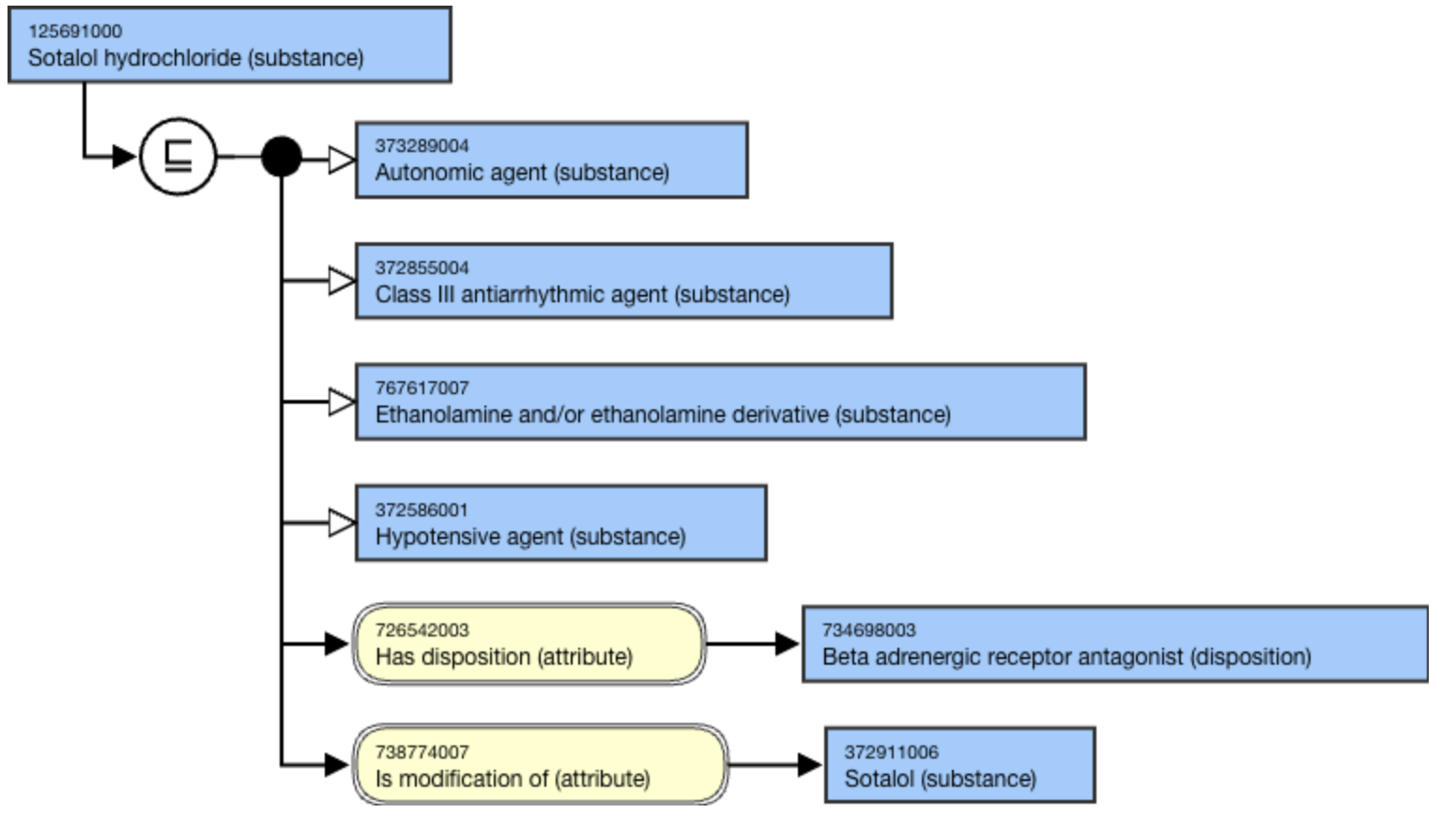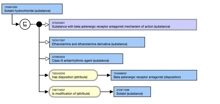 The following illustrates the **stated** view of 125691000 |Sotalol hydrochloride (substance)|: