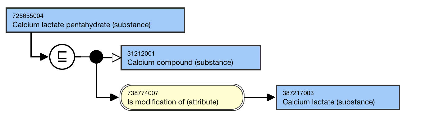 * For example, 387307005 |Calcium carbonate (substance)| is not a modification of |Calcium (substance)|.