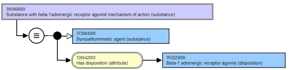 <table data-header-hidden><thead><tr><th width="176.88671875">Parent concept</th><th>105590001 |Substance (substance)|</th></tr></thead><tbody><tr><td><strong>Parent concept</strong></td><td>105590001 |Substance (substance)|</td></tr><tr><td><strong>Definition status</strong></td><td>Defined</td></tr><tr><td><strong>|Has disposition|</strong></td><td><p>Range: &#x3C;726711005 |Disposition (disposition)</p><ul><li>While the allowed range is broader, the Substance Groupers based on Disposition should only use &#x3C;726711005 |Disposition (disposition) as the attribute value.</li></ul><p>Cardinality: 1..1</p><ul><li>While the allowed range is broader, the Substance Groupers based on Disposition should have one and only one |Has disposition| attribute.</li></ul></td></tr></tbody></table>