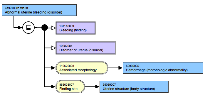 <figure><img src="https://3063935683-files.gitbook.io/~/files/v0/b/gitbook-x-prod.appspot.com/o/spaces%2FSZh4aZdgpviXMYp37bCy%2Fuploads%2Fgit-blob-6cb197ddb062c80f0fcc0becfce9033053f94740%2F174691695.png?alt=media" alt=""><figcaption><p>Inferred view of grouped attribute values of Hemorrhage (morphologic abnormality) and Uterine structure (body structure)</p></figcaption></figure>