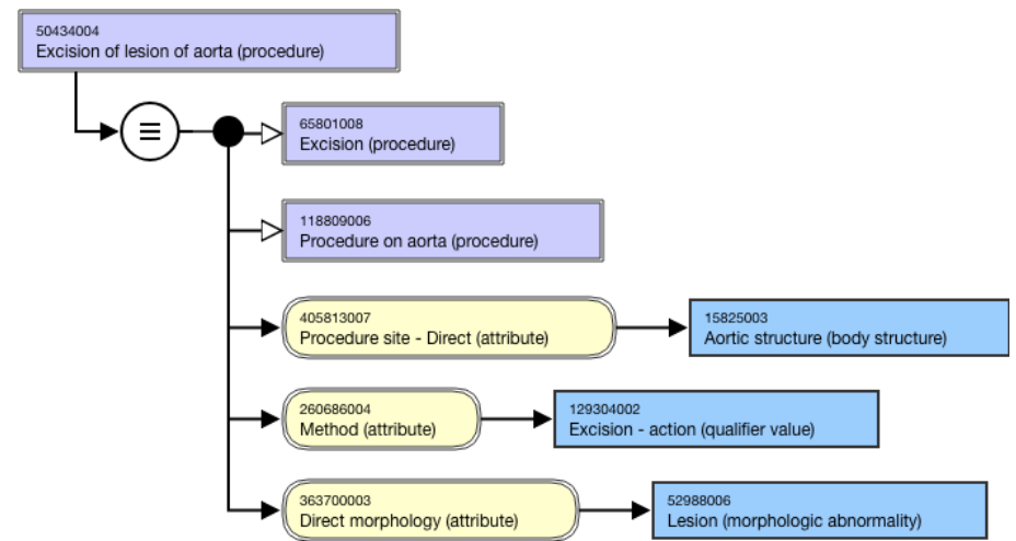 <figure><img src="https://3063935683-files.gitbook.io/~/files/v0/b/gitbook-x-prod.appspot.com/o/spaces%2FSZh4aZdgpviXMYp37bCy%2Fuploads%2Fgit-blob-c29ce6be994903f9ae35ecb669475041ae0abb0a%2F174691705.png?alt=media" alt=""><figcaption><p>Inferred view of Excision of lesion of aorta (procedure) without grouping of attributes</p></figcaption></figure>