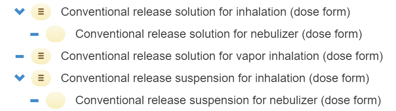 An example of the source EDQM pharmaceutical dose form terminology is shown below, taken from the Standard Terms browser: