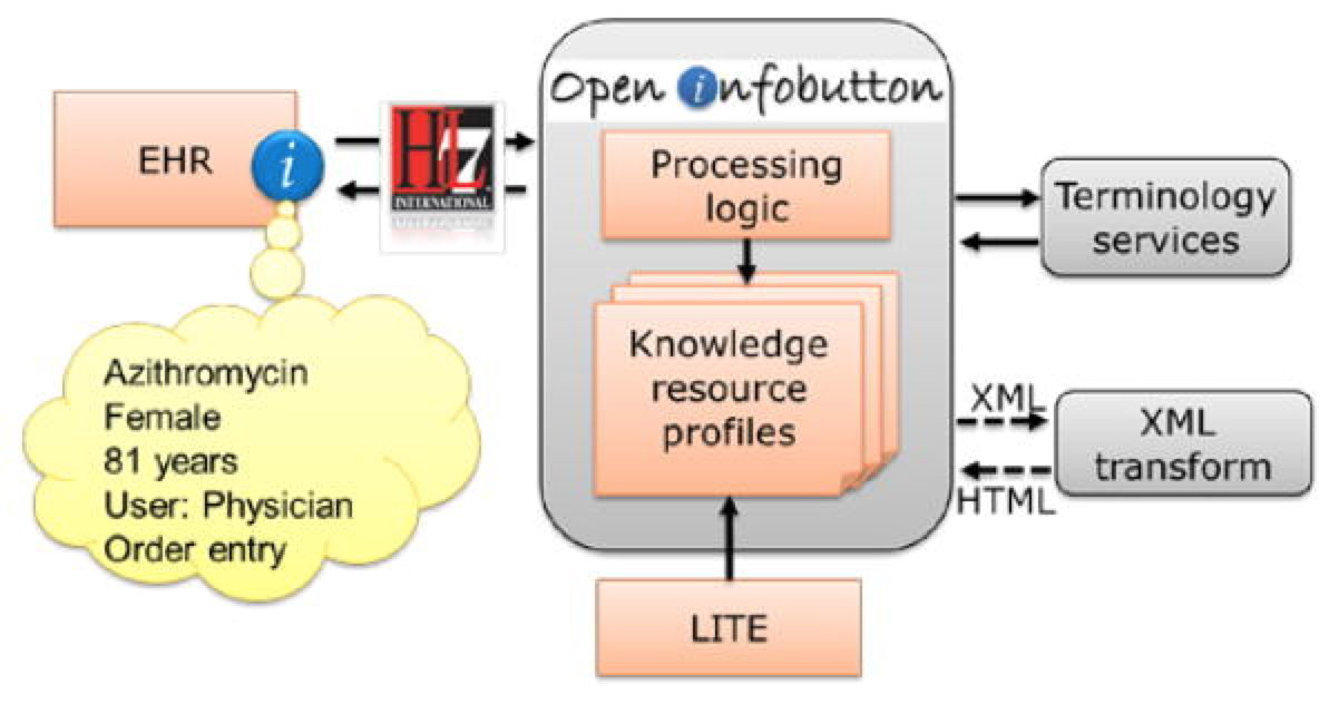<figure><img src="https://1288462658-files.gitbook.io/~/files/v0/b/gitbook-x-prod.appspot.com/o/spaces%2FXxY5vKuPdiVBdqbdZl1x%2Fuploads%2Fgit-blob-f37c69ad567995df4fd5ec0cade23d862df0b339%2F123897687.png?alt=media" alt=""><figcaption><p>Infobutton architecture which uses SNOMED CT for patient problem lists</p></figcaption></figure>
