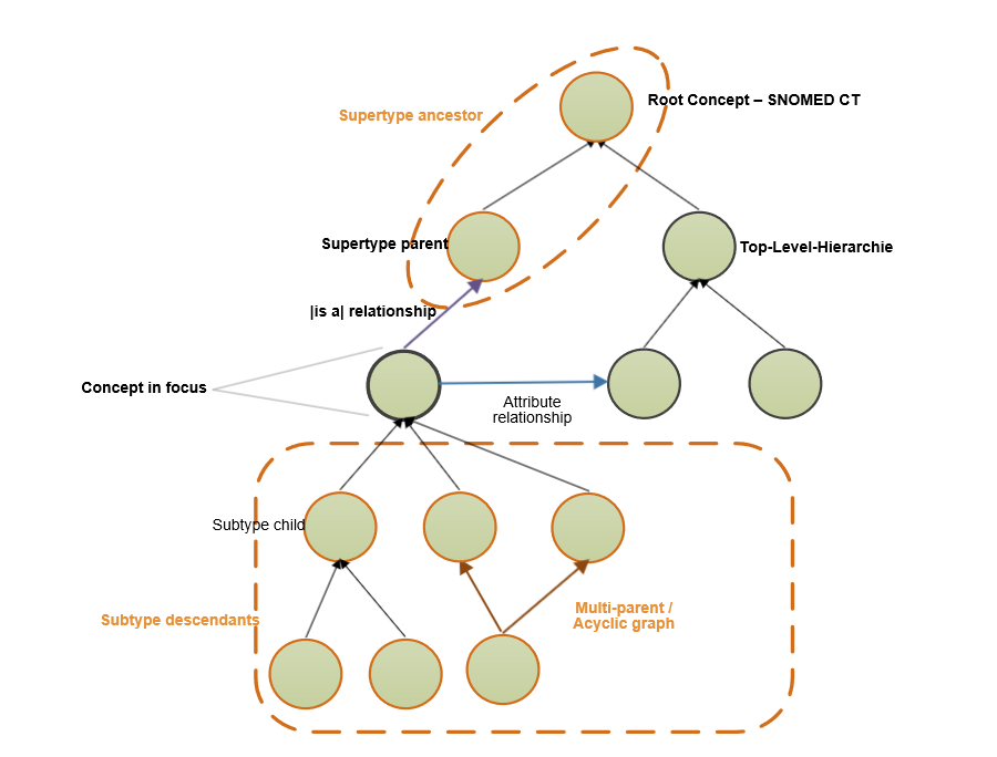 <figure><img src="https://2057870300-files.gitbook.io/~/files/v0/b/gitbook-x-prod.appspot.com/o/spaces%2FRMwWX8s4yIrwfaZjMxiT%2Fuploads%2Fgit-blob-b8822cc1c132f2f96e859b6f268c5a1793756f39%2F61154013.png?alt=media" alt=""><figcaption><p><em>Abbildung 7: Abbildung der Subtyp-Hierarchie von SNOMED CT und Fachtermini zu ihrer Beschreibung</em></p></figcaption></figure>