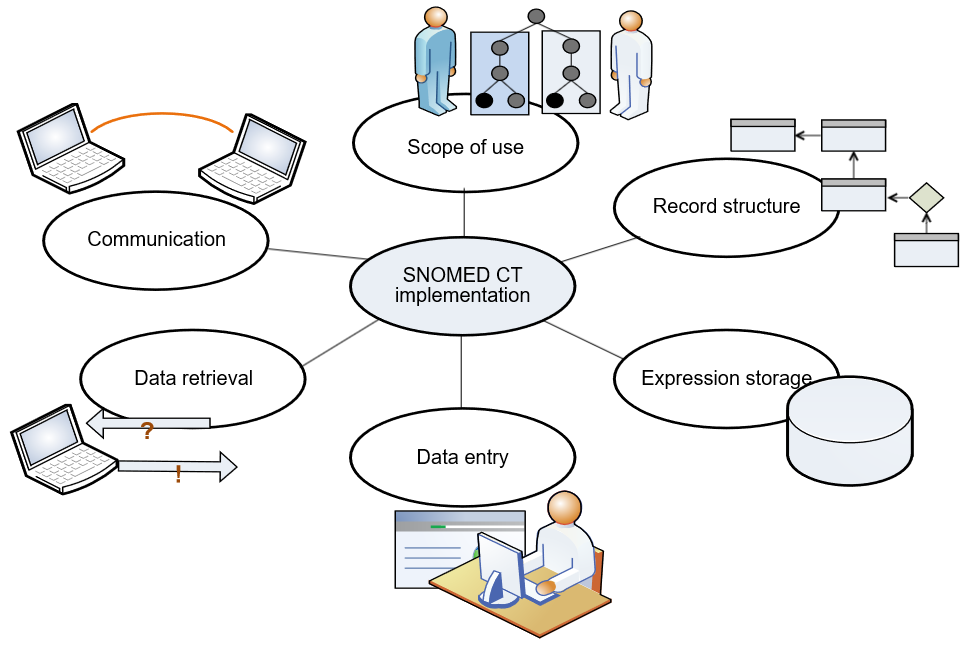 SNOMED CT ist für die klinische Dokumentation hilfreich, da sie die Darstellung detaillierter medizinischer Informationen so unterstützt, dass eine automatische Weiterverarbeitung ermöglicht wird. Damit SNOMED CT medizinische Informationen und semantische Abfragen unterstützen kann, muss das jeweilige Setting in Bezug auf den Nutzungsumfang, die Datensatzstruktur, die Dateneingabe, die Datenabfrage und die Kommunikation sorgfältig berücksichtigt werden.