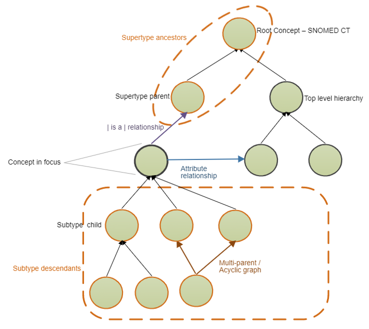 <figure><img src="https://2317125167-files.gitbook.io/~/files/v0/b/gitbook-x-prod.appspot.com/o/spaces%2FRqD57MbRYSFSsKbOrkOa%2Fuploads%2Fgit-blob-085f0be31d4b7c63c415b150f83a782f12dfcad3%2F142134430.png?alt=media" alt=""><figcaption><p><strong>Figure 8</strong> – Polyhierarchical structure of concepts (as shown in SNOMED International [Starter Guide](https://confluence.ihtsdotools.org/display/DOCSTART/SNOMED+CT+Starter+Guide))</p></figcaption></figure>