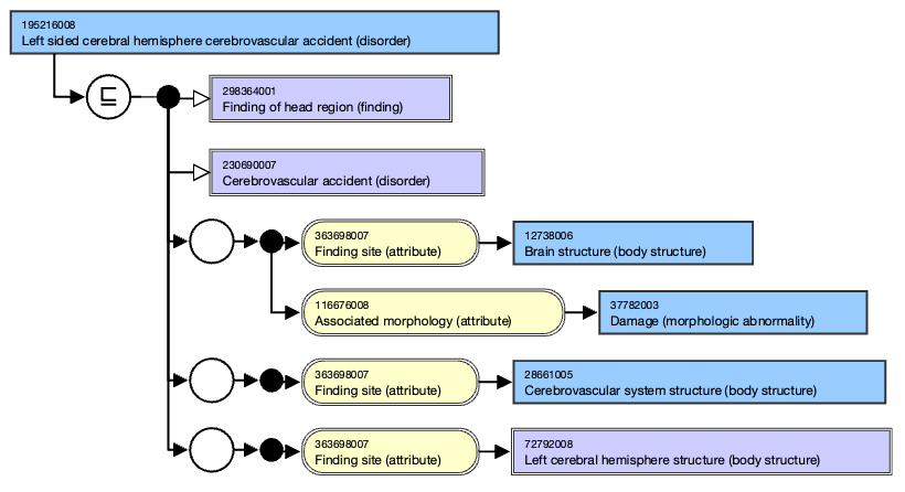 <figure><img src="https://2317125167-files.gitbook.io/~/files/v0/b/gitbook-x-prod.appspot.com/o/spaces%2FRqD57MbRYSFSsKbOrkOa%2Fuploads%2Fgit-blob-cab2602d19cd9f468f82da708c4c97fdc5d54a6c%2F142134434.png?alt=media" alt=""><figcaption><p>Figure 4. Diagrammatic representation of the relationships as “inferred view” of the concept 195216008 |Left sided cerebral hemisphere cerebrovascular accident (disorder)| (International Edition 2021-07-31)</p></figcaption></figure>
