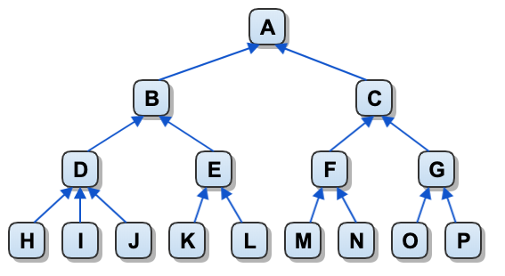 * The figure below shows a monohierarchy. Each node has one parent so there is only one route from each node to the top of the hierarchy.\